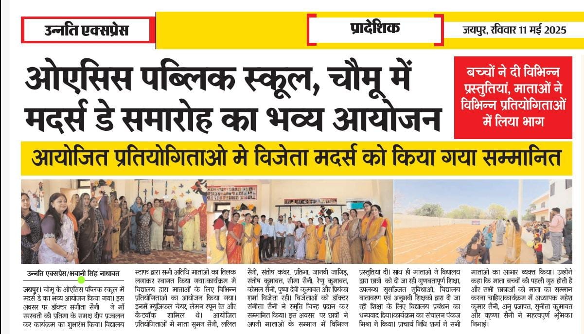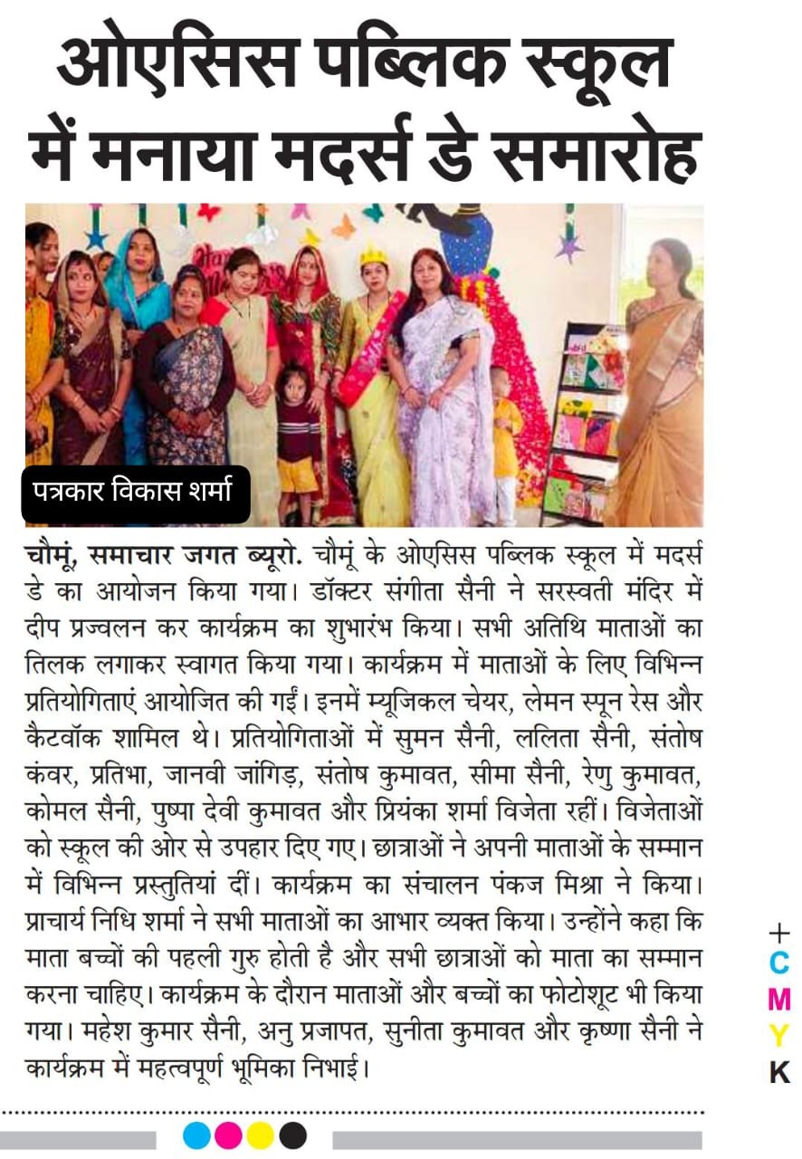 Mother's Day Celebrated at Oasis Public School, Chomu on date 11-05-2024