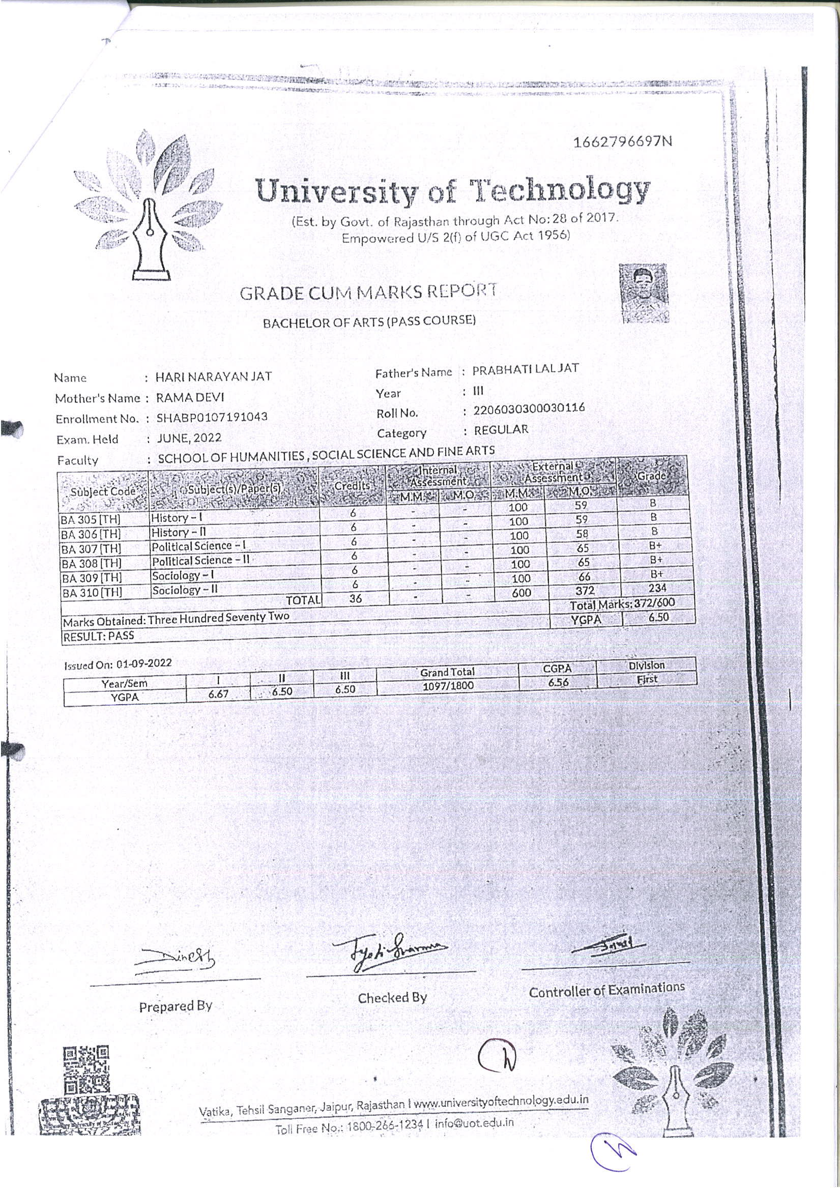 | 3 | B.A. | UOT | 2022 | 60.67% |