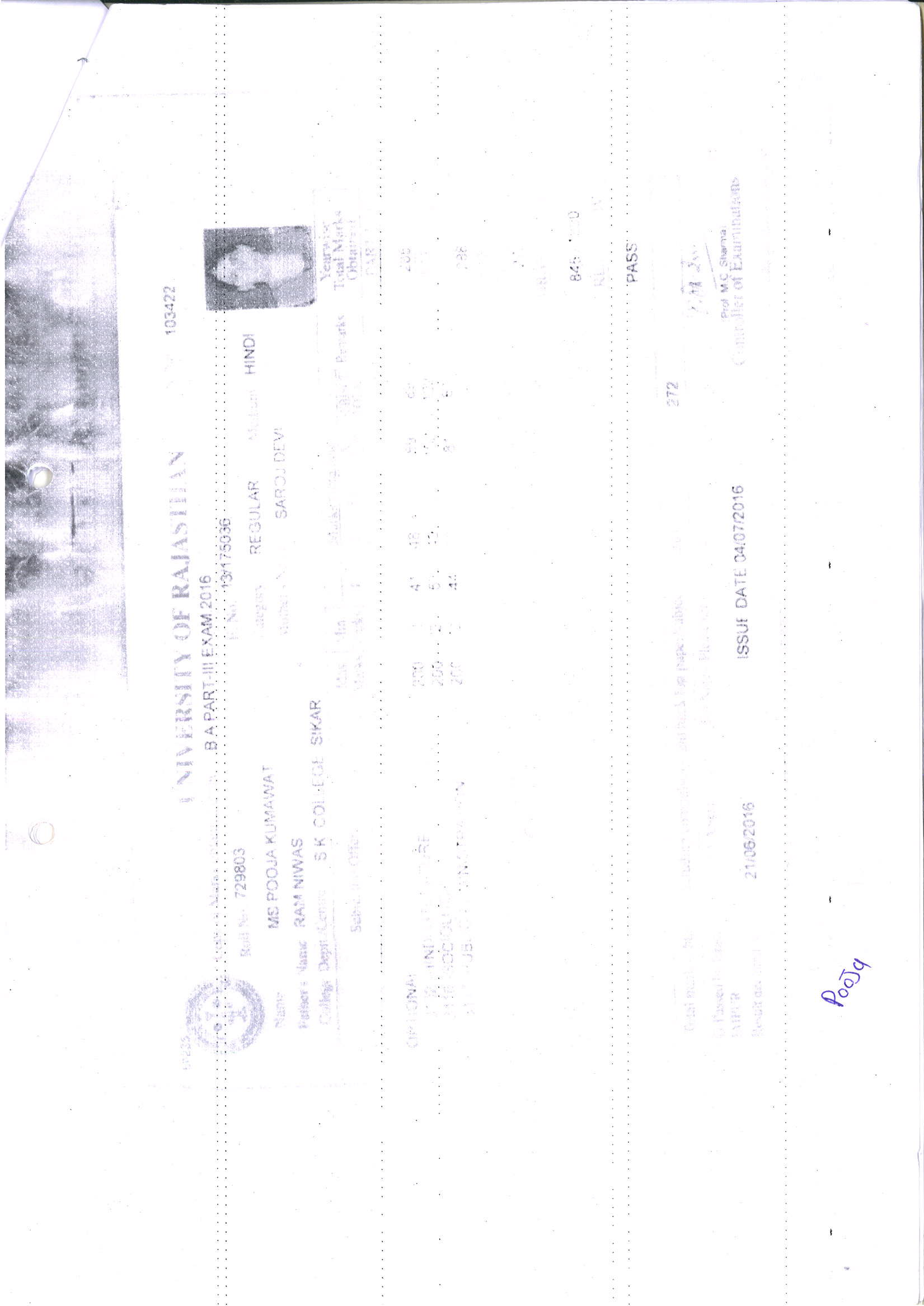 | 3 | B.A. | UOR, JAIPUR | 2016 | 46.94% |