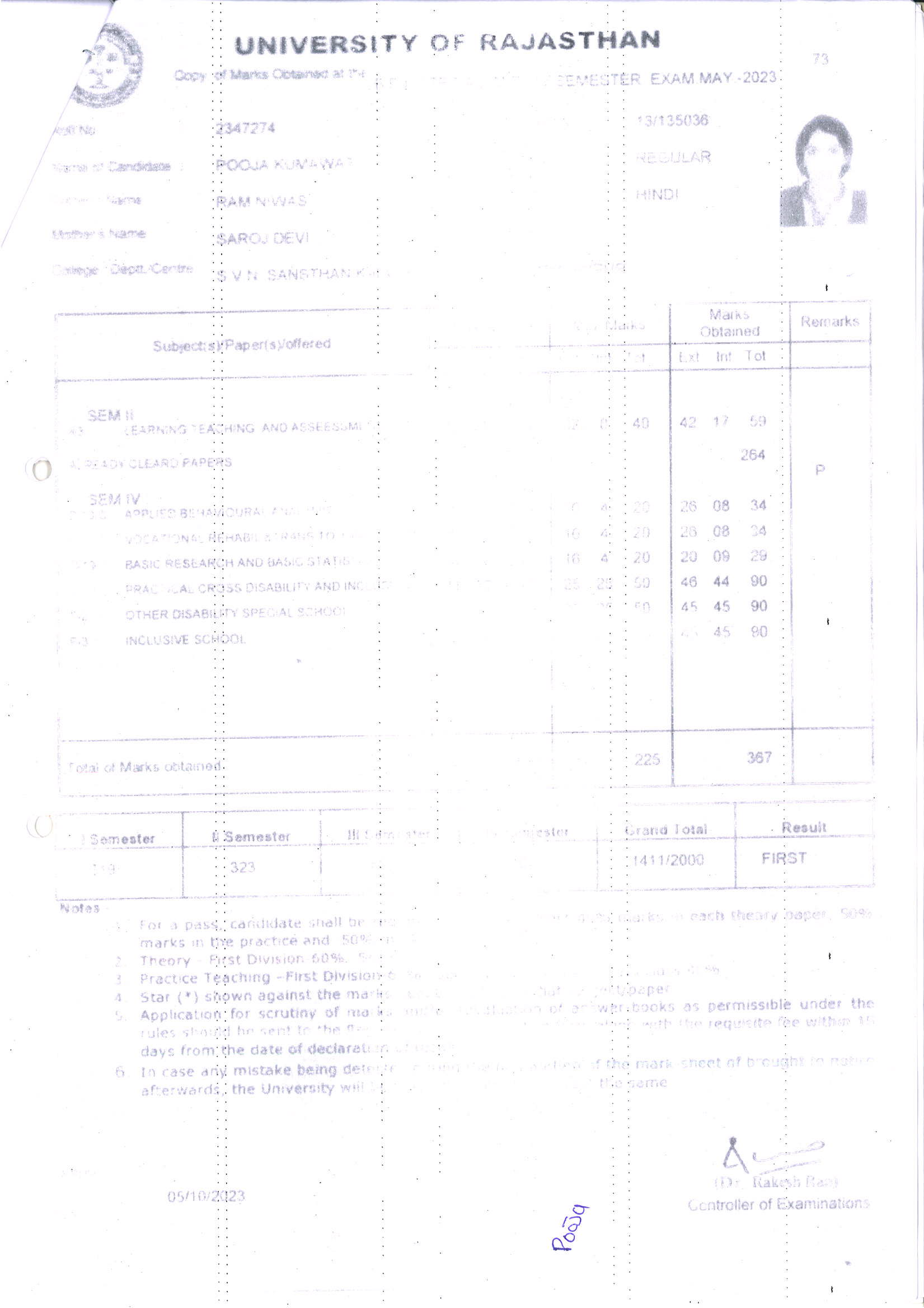 | 4 | B.Ed. | UOR, JAIPUR | 2023 | 70.55% |